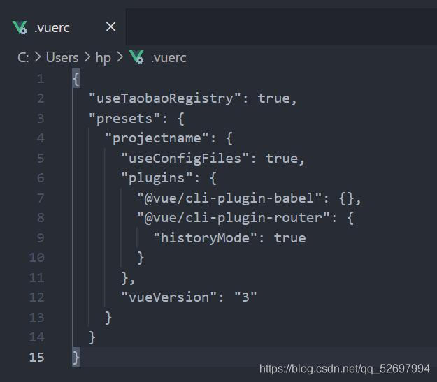 这些配置会保存在c盘administrator下的".vuerc"文件中