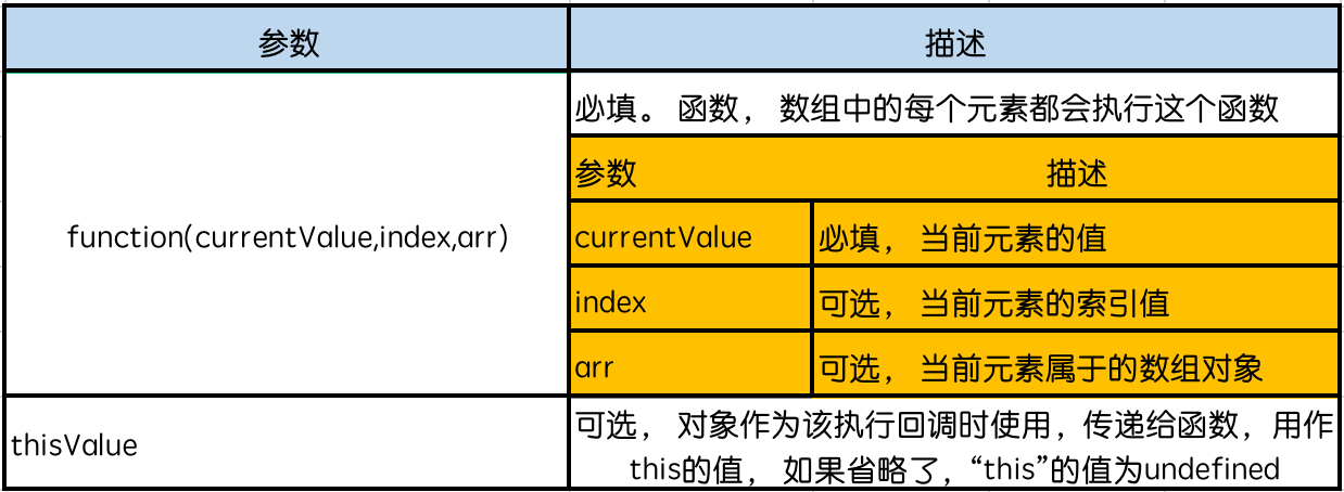 - function函数也有参, 这里只传入了第一个入参, 表示: 循环遍历时的数组元素.