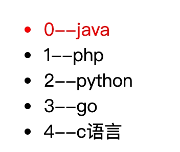 - 第二步: 在class属性中设置 :iscurrentindex == index. 表示选中元素的下标显示红色, 其他不显示红色.