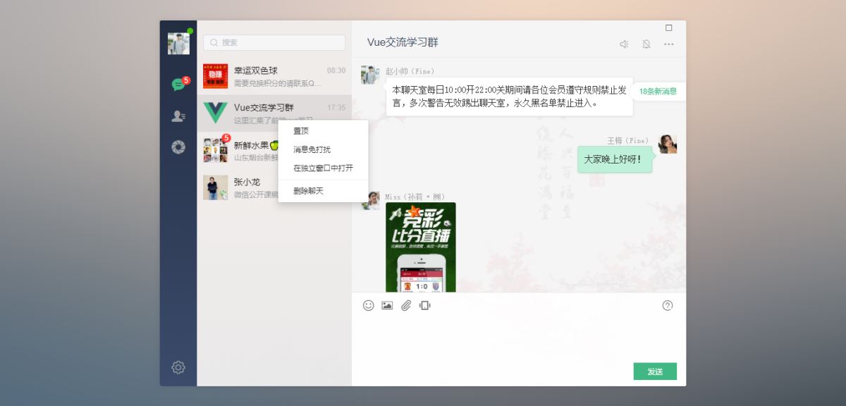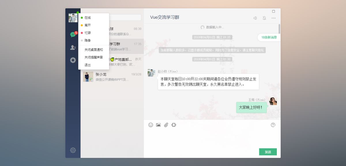 以上所述是小编给大家介绍的vue+web端仿微信网页版聊天室功能,希望对大家有所帮助