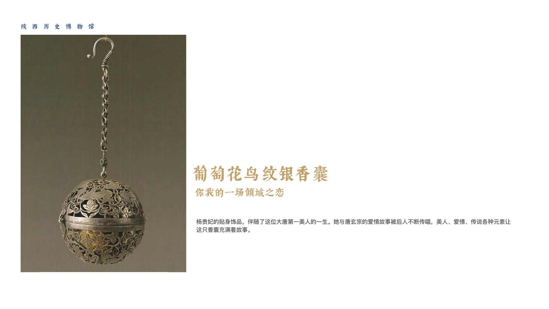 精巧细腻的《葡萄花鸟纹银香囊》