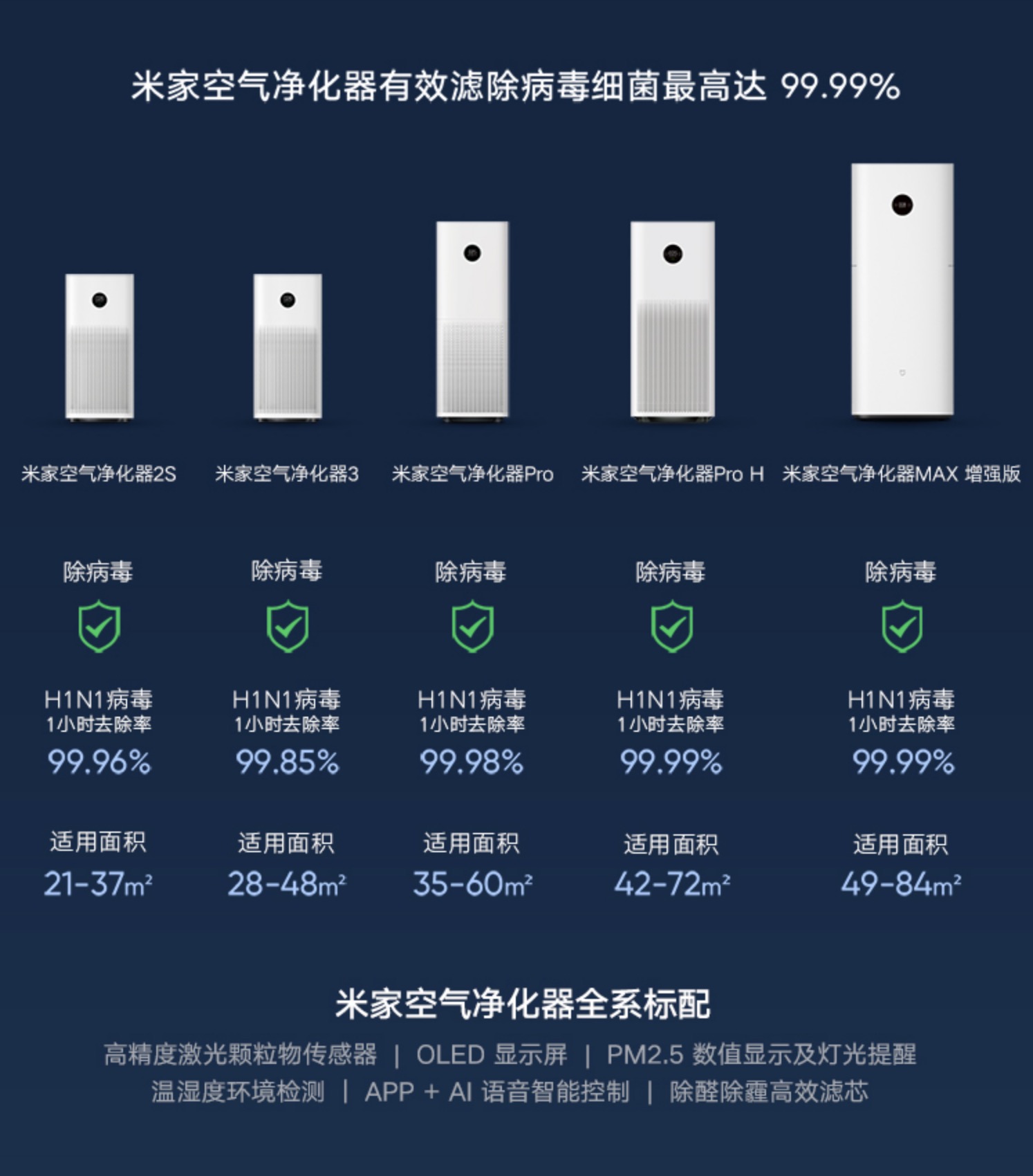 另外米家空气净化器全系具备还能对抗细菌、病毒、甲醛、过敏原等常见污染物的能力。