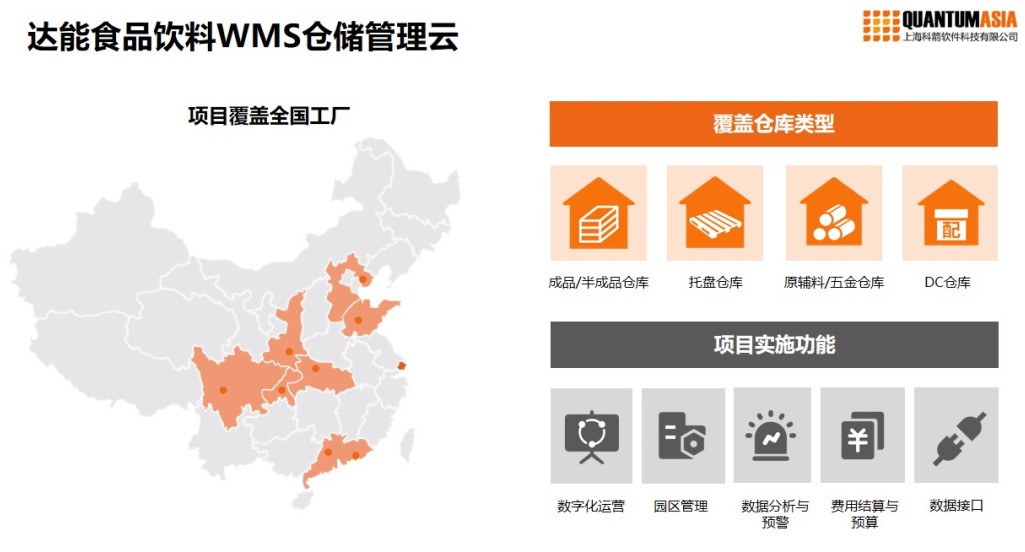 达能中国饮料经过全面考量国内各家仓储管理系统供应商,最终选择科箭WMS云,希望通过此项目建立全国各工厂与DC的标准化仓储作业流程,构建一体化的仓库管理系统,管理从成品到原辅料等不同的仓库运营。从而在数据统一的基础下进一步优化仓储效率,降低运营成本,从而向智能化仓储发展。达能饮料供应链总监表示:“打造数字化供应链闭环,提升仓储作业效率是当下仓储管理优化的第一步。”