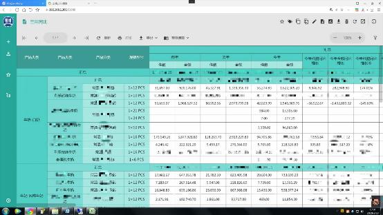 典型的中国式复杂交叉报表,历史三年的各奶制品大类、子类、明细的销售件数和金额的分组汇总、件数同比增长数、同比增长率、行汇总和列汇总等复杂计算,通过Wyn Enterprise强大的表达式计算能力,均得以快速实现。