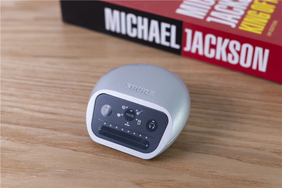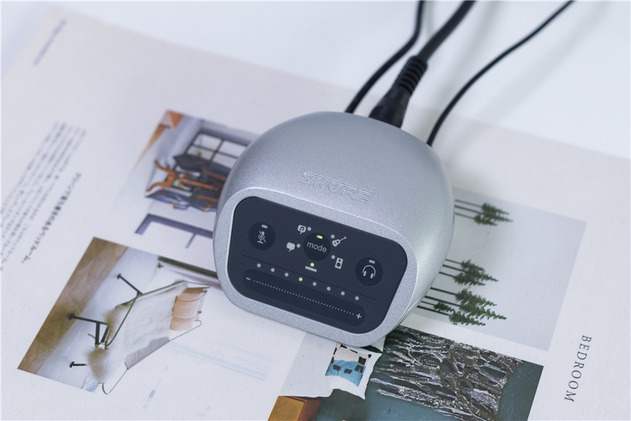 除了话筒之外,老师们再搭配舒尔MVi移动数字音频接口使用,可以让直播的效果更上一层楼。舒尔MVi虽然看着只有巴掌大小,但还是挺有分量的,全金属机身材质,更能够坚固抗摔。