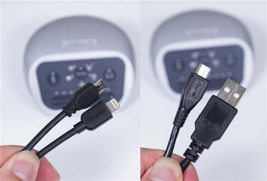 虽然这些音频装备看起来很复杂,但其实布置起来也非常地简单,官方已经赠送了所必需的的连接线,包括一根Micro-B转Lightning以及一根Micro-B转USB连接线。我们只需要将PGA48、SE215连接到MVi上,然后将MVi连接到手机、笔记本或者电脑上即可。