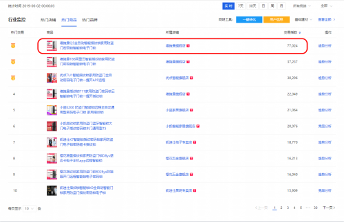 ▲6月1日全天天猫生意参谋《电子门锁类目商品实时排名》