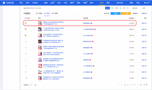 ▲6月16日全天天猫生意参谋《电子门锁类目商品实时排名》