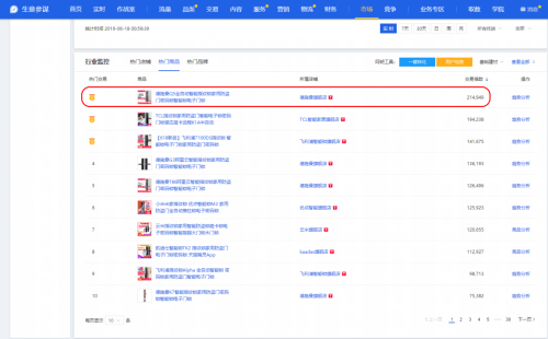 ▲6月18日前1小时天猫生意参谋《电子门锁类目商品实时排名》