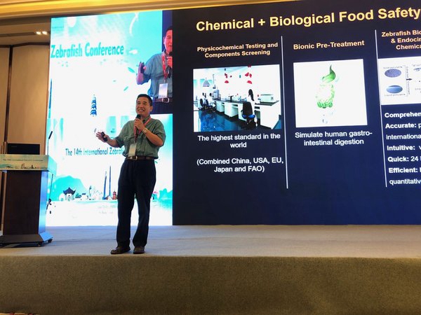 作为国内斑马鱼应用技术的开拓者和引领者,也是亚洲地区唯一一家同时通过AAALAC国际认证和ISO17025认可的斑马鱼实验机构,杭州环特生物科技股份有限公司在此次会议中承办主题为“Fishing for drugs, heath products and safe foods”的专题分论坛。环特生物创始人李春启博士、复旦大学王永辉教授、麻省理工学院朱培新博士、德国布伦瑞克工业大学莱因哈德·斯科斯特教授、澳门大学王秀芬教授、山东大学李翔博士等六位国内外专家在分论坛上发表主题报告,分别就斑马鱼药物、保健品、食品产业的应用以及斑马鱼与人工智能识别技术的结合等内容做了分享。