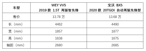 而从表格更可以看出了,BX5在尺寸上比起VV5有着绝对优势。