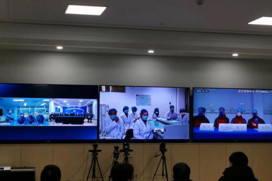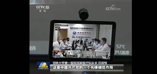 图为:李兰娟院士团队通过小鱼易连为高危病人远程会诊