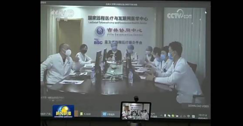 图为:吕国悦教授团队通过小鱼易连与后方总院建立高清视频互动连接,为病人制定诊疗方案