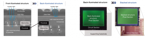 据介绍,索尼独家研发的背照式技术(2008年)和堆栈式技术(2012年),都是手机拍摄效果发生巨变的划时代技术,前者将逻辑电路层与感光层反置,实现光的零损耗;后者将原来围绕感光区的逻辑电路安置到基板上,大幅提高成像效果并缩小尺寸。