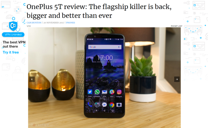《Pocket-lint》给一加5T打出了5星的编辑推荐好评,并评价道:旗舰杀手回来了,比之前更大更好。