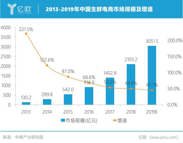 百果园所在的生鲜零售行业,从2012年到2019年处于高速增长期,并且在2018年行业规模超过2000亿人民币,未来的增长空间和增长速度依旧有非常大的潜力。根据中商产业研究院的报告,2018年,中国生鲜电商市场规模超过2000亿人民币,2019年将超过3000亿人民币。