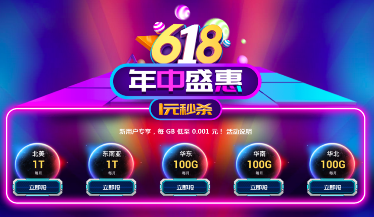 福利一、1元秒杀(新用户专享,每 GB 低至0.001元)