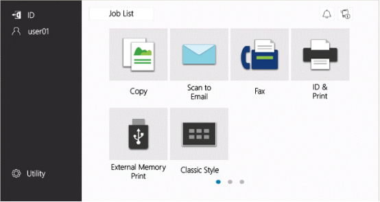 ineo+ 550i系列新品采用了更加符合现代商务办公环境的流线型设计,搭配了10.1英寸触碰式操作面板,并且该面板可根据用户的视觉和使用习惯最大调节至90度。同时,该系列新品拥有全新的GUI(图形化用户界面),用户通过简单的几个步骤就能找到自己所需要使用的功能。此外,通过划分为信息区和功能区的主菜单界面,用户还能清晰地了解自身的登录状态及设备功能,并可自由切换选择自己所需的功能。