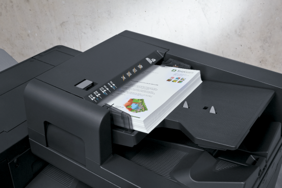 ineo+ 550i 系列新品为满足广大办公人士日常繁重的文印需求,标配了双面同步输稿器,可实现最大300页纸张的承载量;在扫描速度方面,可在200dpi的分辨率下,实现140页/280页每分钟(单面/双面)的作业能力,可轻松满足用户大批量的日常扫描工作,例如:工单、法律文书、学习文件等。此外,标配的输稿器中还搭配了超声波感应探头组件,通过该组件可检测到高速作业下重叠进稿的情况,避免原件的漏扫,在保证用户高效作业的同时,也可提高文印输出的精准度。