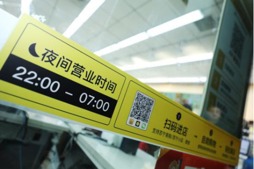 在苏宁双模24小时Biu店,顾客通过二维码扫码进店,店门随即关上,外人无法尾随进店。顾客如有问题需要沟通,可在结账处与远程客服实时联系。远程客服同时监控20家店,效率远高于夜间单店雇人值守,并与110联网,全程保障顾客安全。顾客自助购物后,店门再次打开,顾客安全离开。