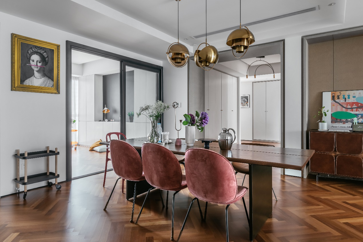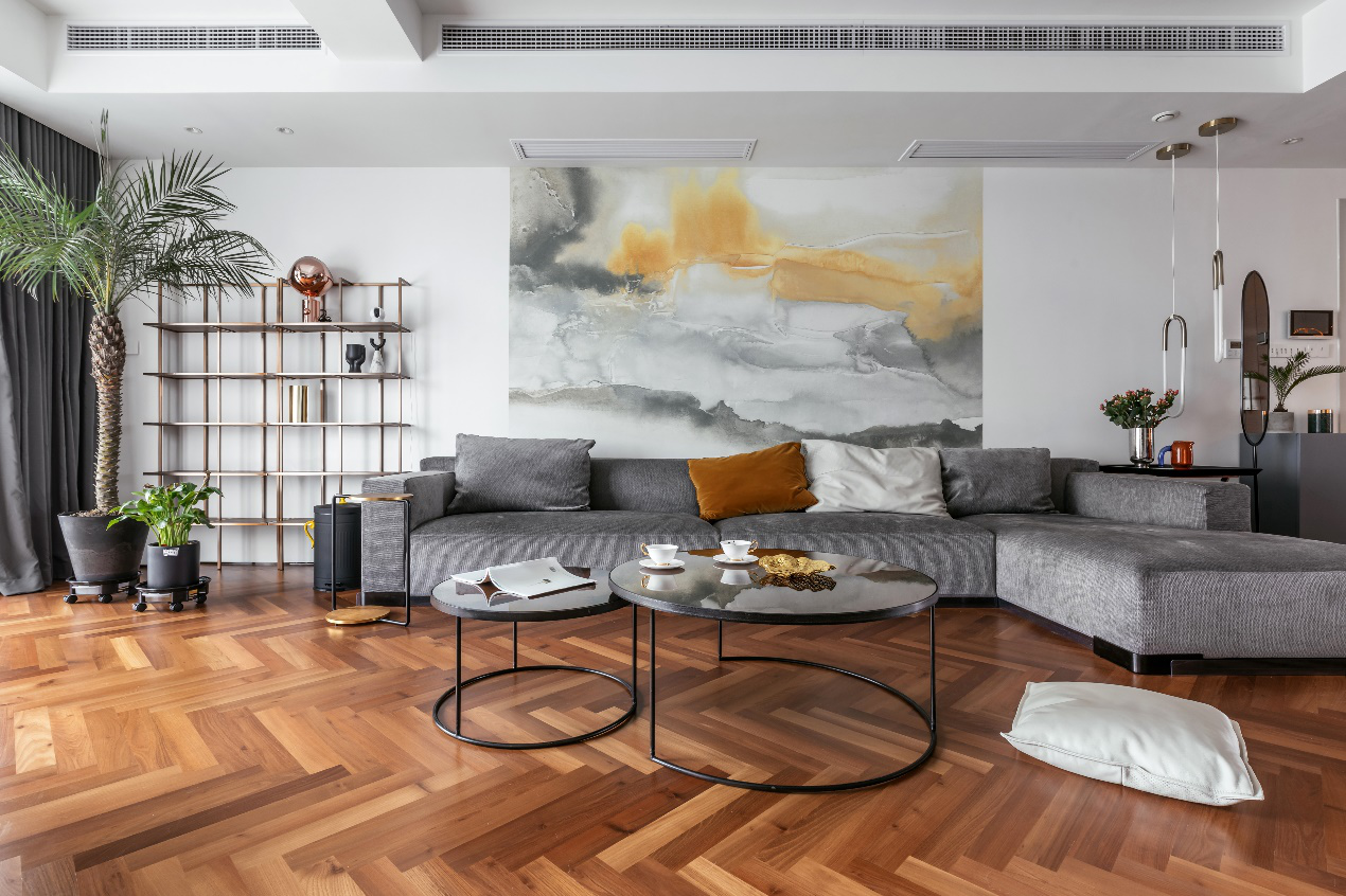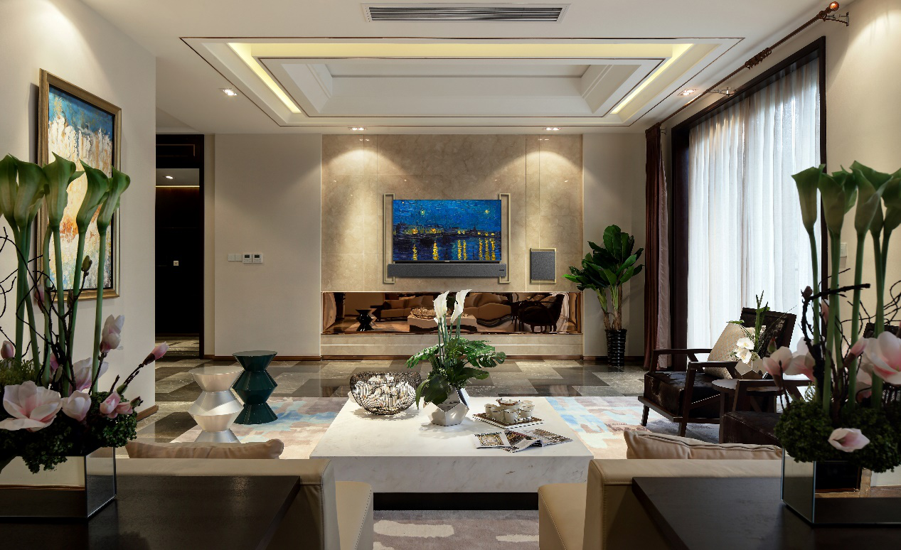 展现新东方设计风格的作品《安之若泰》,通过新的分隔方法,以简约的造型为基础,增加整体空间的层次感,东方美学款的XESS浮窗全场景TV从传统中式家具设计中取其神韵,丰富了整体空间的质感,胡桃木和金属框结构轻盈雅致、富有灵性。