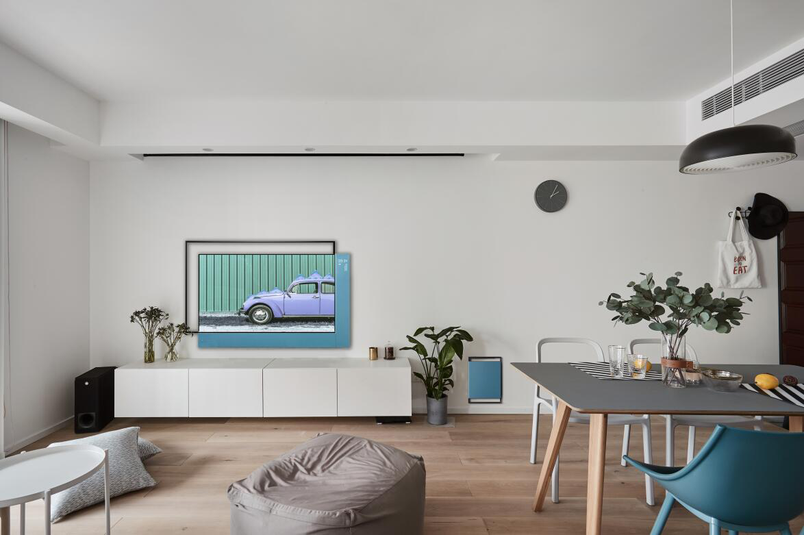 擅长北欧风的设计师金艳深刻了解家对于人们情感的承载,所以对于普遍在80-90平方米的常规小户型设计时,她觉得舍弃一些不必要的占体,尽量开放通透的公共空间,能够增加新的视野。与之相配的立体美学款XESS浮窗全场景TV以微妙的平衡感和右侧独立设置的信息窗口,营造出温暖的家居体验。
