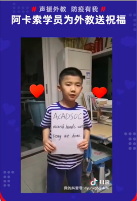 据阿卡索此次活动的负责人介绍,在国内疫情爆发时,阿卡索外教们不仅在授课之余鼓励中国学生,安抚他们的焦虑情绪,还自发筹集口罩等医用防护物资,支援国内抗击疫情一线人员。除此之外,当中国因爆发肺炎疫情被国外恶意中伤和歧视时,阿卡索外教们更是公开在Facebook、Twitter等社交平台上声援中国。外教们所做的一切,都令国内学员倍感温暖与鼓舞。如今,国内疫情缓解,孩子们反过来把来自中国的爱和善意,传递给数以万计的全球外教。