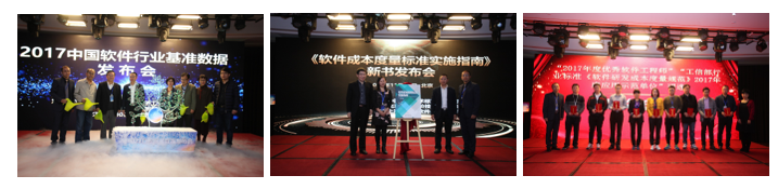 本届大会上,工信部标准化研究院、北京软件造价联盟、北京软交所三方联合发布了国内最权威的“2017年中国软件行业基准数据”,并由北京软件造价联盟首席专家王海青做了详细解读。工信部标准化研究院、北京软件造价评估联盟、上海计算机软件技术开发中心共同参加了由清华大学出版社出版的新书——《软件成本度量标准实施指南》的发布仪式,此书历时两年编制完成,有助于工信部行业标准《软件研发成本度量规范》和国家标准《软件测试成本度量规范》的实施落地。由北京软件造价评估技术创新联盟组织的“工业和信息化部行业标准《软件研发成本度量规范》2017年度应用示范单位”以及“2017年度优秀软件工程造价师”评选活动举行了盛大的颁奖典礼,共有国家开发银行等十四家单位被评为“工业和信息化部行业标准《软件研发成本度量规范》2017年度应用示范单位”、招商银行彭欣华等十五人被评选为“2017年度优秀软件工程造价师”。