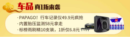 11月5日,大圣车服全场车品1折购。引发全民疯抢的台湾PAPAGO行车记录仪仅需49.9元,内置胎压监测58元拿走,原价68元的标榜雨刷精10支装现价6.8元,等等。还有英国史班哲车护品、标榜清洁护理系列、精选车用小物等超值车品统统一元售卖。