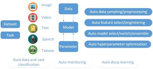 而AutoDL 2019-2020总决赛作为系列赛的收官之战,其难度进一步加大。比赛不只局限在单一技术领域,而是要求参赛选手设计开发无任何人工干预的自动深度学习系统,并使用该系统解决包括图像、视频、语音、文本和结构化表格数据等多领域的全自动多标签分类任务探索。挑战赛一共分为反馈阶段和决赛阶段。在反馈阶段,参赛选手基于24个训练数据集,离线开发AutoDL程序,实现训练数据处理、模型结构设计、参数调校等过程;在决赛阶段,参赛选手的AutoDL程序在无任何人工干预的前提下,自动完成10个私有数据集的模型训练。决赛阶段多轮评估的平均排名将决定获胜者。浪潮在本次竞赛中表现出色,在10个单项竞技中取得了1个单项第一、1个单项第二和3个单项第三的好成绩。