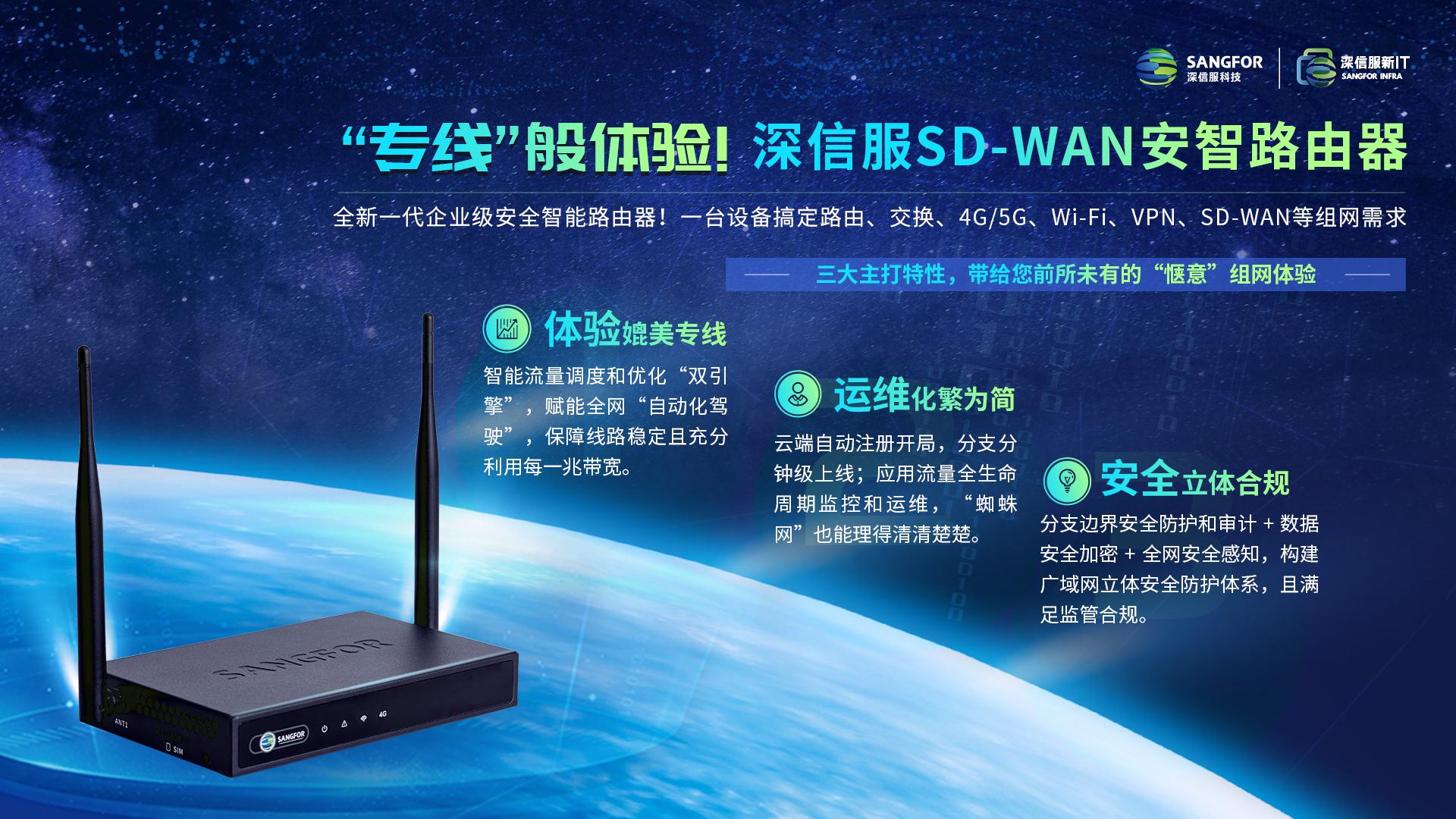 在此背景下,谁有可以落地的成熟解决方案,来满足市场高体验低成本的需求,谁就能破冰突围。深信服SD-WAN以前瞻眼光提早布局,围绕高质量业务体验、易部署易运维、安全防护三个层面打造核心竞争力,并将***组网、路由、交换、防火墙、流控、Wi-Fi、4G接入等功能 “ALL in ONE”,使用户IT投入成本降低一半以上,并基于云端易部署策略与集中可视化管理,降低实施成本与后期运维成本,有效降低优质组网的使用门槛。
