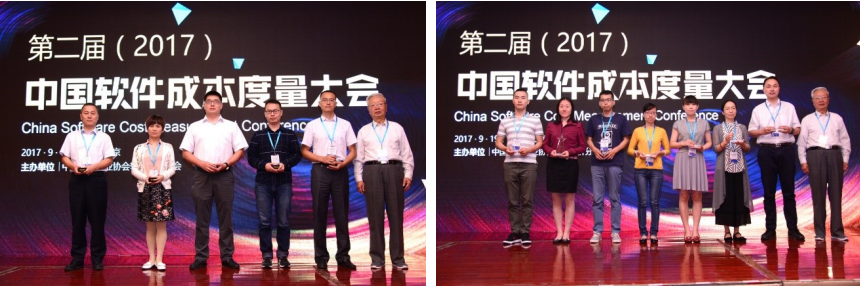 借助第二届中国软件成本度量大会的契机,在已有工作基础上,造价分会秉承行业组织,强化行业自律,基于行业影响及成果、行业贡献度颁发2017年度成本度量实践标杆企业以及2017年度成本度量实践优秀企业。电科院等6家被评为“标杆企业”;东软等10家荣获“优秀企业”。特邀请软件工程泰斗、清华大学教授郑人杰先生为以上企业代表颁奖。