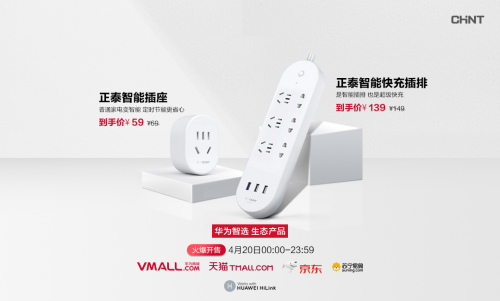 华为智选生态产品——正泰智能插座、正泰智能快充插排已在VMALL华为商城、天猫、京东火爆开售。4月20日开售日,插座仅需59元,插排仅需139元,普通电器变智能,开启智慧新生活,打造温馨舒适的办公、居家全场景!
