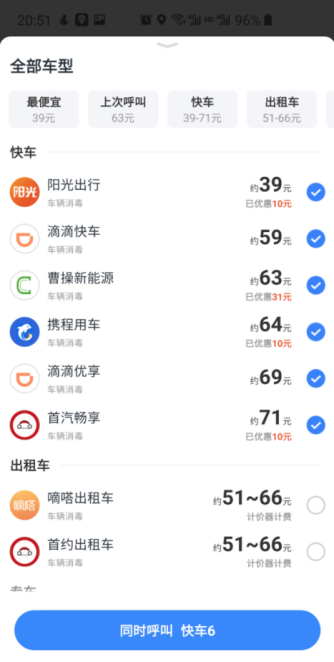 (百度地图打车功能全网车型、价格对比)