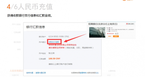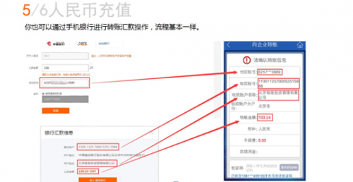 3.5 填写汇款单后,进入网银充值。请按照下图正确填写【银行汇款信息】完成汇款。