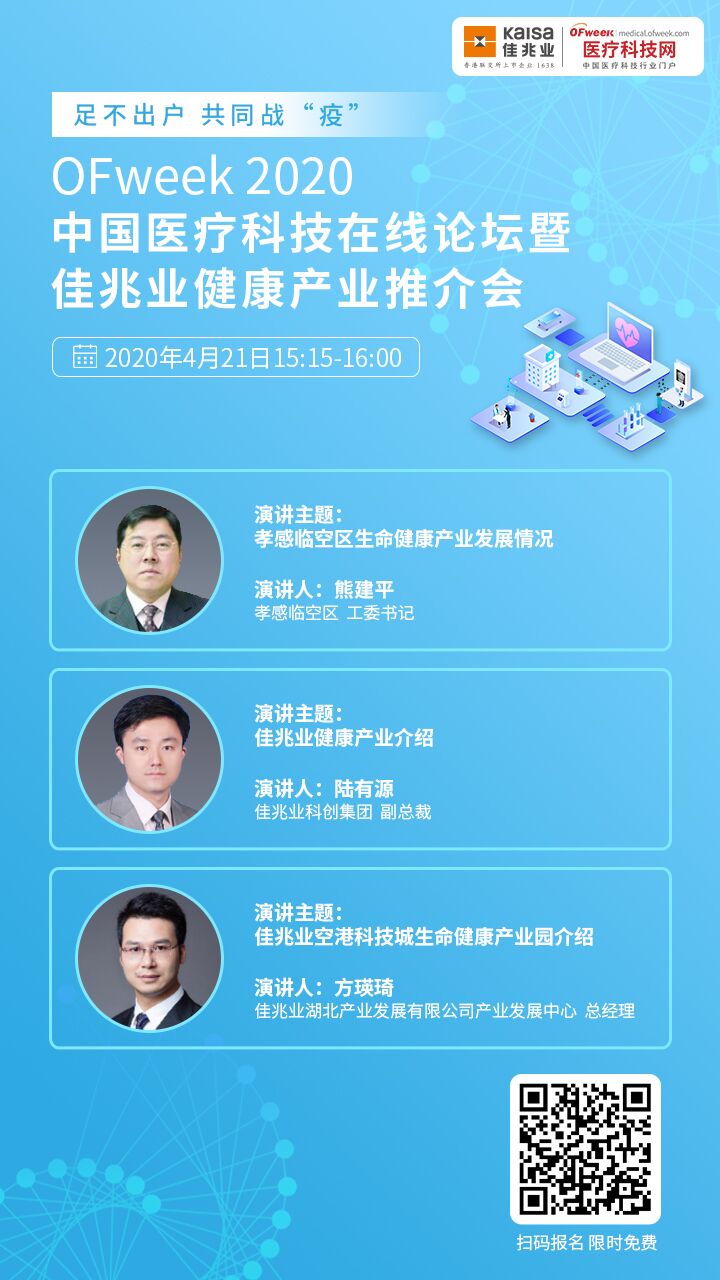 值此背景下,由中国高科技行业门户OFweek维科网主办,OFweek医疗科技网承办的“OFweek 2020中国医疗科技在线论坛”将于2020年4月21日在线举办。论坛同期召开佳兆业健康产业推介会,孝感临空区工委书记熊建平、佳兆业科创集团副总裁陆有源、佳兆业湖北产业发展有限公司产业发展中心总经理方瑛琦将出席本次推介会,针对孝感临空区生命健康产业发展情况、佳兆业健康产业、佳兆业空港科技城生命健康产业园等进行介绍,共话医疗健康产业与资本融合相关话题。
