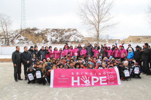 2015年,美商婕斯在全球启动的“守护孩童关怀计划”落地中国张家口倒拉嘴村,在那里捐建了学校,并为孩子们送去了书包及文具用品,受到了当地村民的热烈欢迎。
