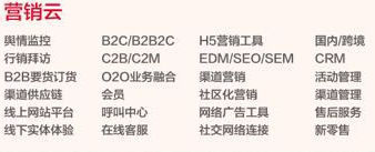 例如,营销云,用友云生态给出了包括会员中心、呼叫中心、在线客服、CRM、新零售等在内的24个细分门类,可以说囊括了和营销相关的所有服务。