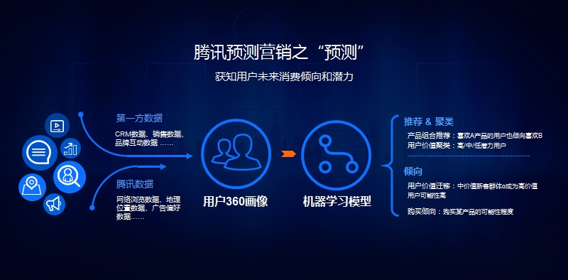 在预测营销的背后,大数据的重要性也是不可忽视的。以腾讯全链路营销云平台为例,尤为强调最大化数据的价值,通过数据的循环利用,打通营销全链路。