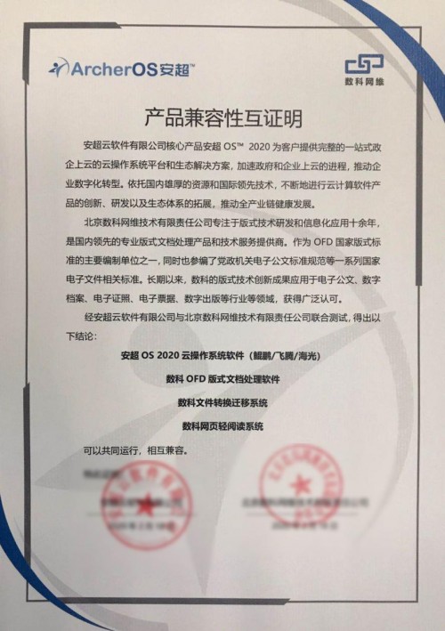 华云数据作为云计算独角兽充分发挥云计算等的技术优势,与数科网维一起,帮助用户节约资源、减少信息“孤岛”、提高办公效率、降低运行维护成本,为协同办公、行政管理、文件发布利用的全面信息化提供高效、安全可控、低成本的OFD版式服务。