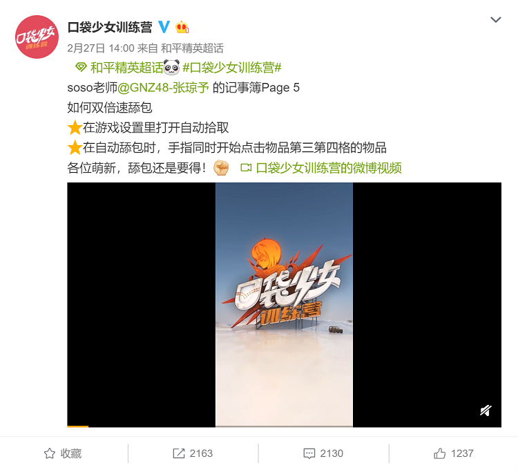 据了解,《口袋少女训练营》是与游戏业务的内容联运,能够助力游戏IP的开发,积极促成游戏信息内容化的落地与实施,拓展其衍生价值。《口袋少女训练营》作为游戏教学类短视频节目,让用户通过手机观看拉娜Lana、GNZ48张琼予、范薇三位少女训练师的《和平精英》操作教学,为玩家带来美女大神上分攻略。