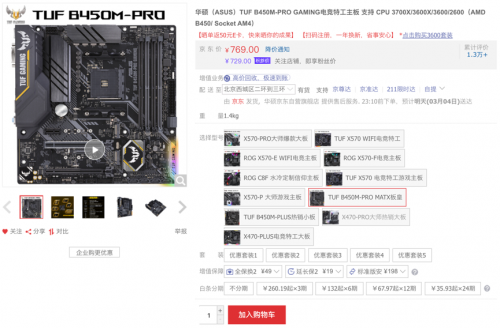 TUF B450M-PRO GAMING主板——B450M板皇 到手仅729元