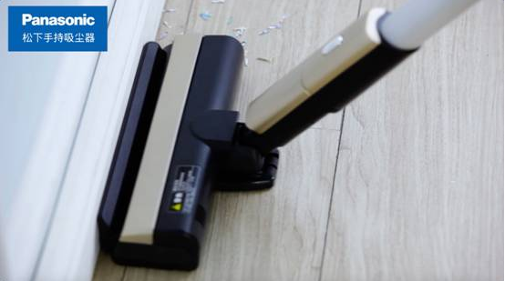 当吸尘器靠近墙角时,松下KABATORI多维吸嘴贴合条会向上打开,吸嘴内置的回转刷直接够到墙壁边角,吸净垃圾灰尘。