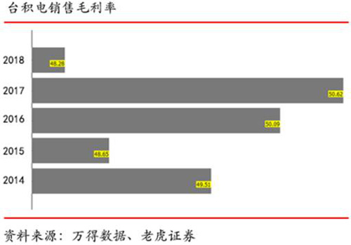 公司2018年毛利下滑2.34%至48.28%,不过以公司过去5年的财务数据来看,公司的产品毛利相当可观,处于50%上下。