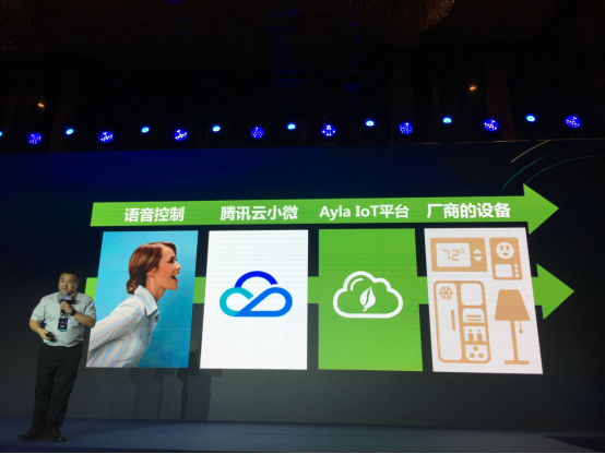 6月21日,在2017腾讯“云+未来”峰会上,全球领先的企业级物联网云平台提供商Ayla Networks艾拉物联(以下简称“Ayla”)宣布,正式与世界领先的中国互联网企业腾讯集团的智能云平台“腾讯云小微”打通,实现Ayla物联网云与腾讯云小微的云间对接。并在腾讯“云+未来”峰会AI小微专场论坛上,现场演示了通过Ayla云平台连接腾讯云小微的知名品牌企业的产品,澳柯玛、海信、美的小天鹅、TCL、Power7、杜亚等均通过腾讯云小微实现智能产品现场发声,进行人机智能交互。