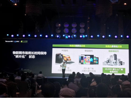 演讲过程中,张南雄分享了他对全球物联网市场的看法。他表示在这个市场规模将会触达11万亿美元的巨大市场中,将会涌现超过270亿台各式各样的物联网设备,但仅有20%的企业才能触及到其中的核心价值。其他大部分企业将受阻于纷繁复杂的规则、高代价的开发成本、千变万化的市场环境,从而难以真正进入物联网市场。