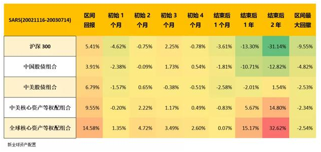 非典疫情期间,由于疫情冲击主要集中在大中华地区,我们主要分析与中国资产相关的投资组合的表现。
