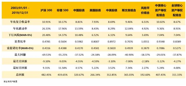 然而,既然疫情带来的市场冲击大多只存在于短期的,全球资产配置组合在更长的市场周期内表现如何呢?以下为上述各投资组合在2003-2019年这16年间的表现回测结果: