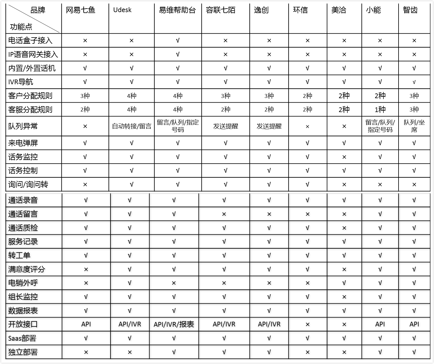 ·电销外呼:包含智能语音外呼机器人、智能自动外呼、回访计划、外呼任务等功能点,这个功能目前不是云客服系统的主打功能点,Udesk、智齿、小能、美洽可满足。
