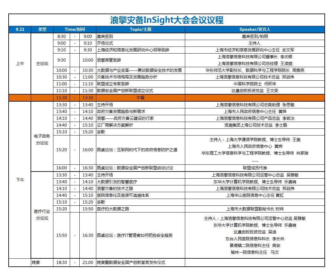 国家网络安全周期间,以"预·见未来"为主题的灾备Insight高端行业论坛将于9月21日在上海佘山(林荫新路1288号)举行。本次论坛由上海浪擎信息科技有限公司主办,由上海市经济和信息化发展中心、上海市智慧城市促进建设中心和上海市信息服务业行业协会领衔指导。通过本次论坛,浪擎将建立一个国内领先的灾备行业信息分享平台,让各行各业认识和重视企业数据安全生产以及灾备的重要性,积极应对愈演愈烈的网络数据安全态势,提升自身信息系统备灾、容灾、减灾系统解决方案的建设能力;同时在大数据领域的背景下探讨如何为信息安全保驾护航。